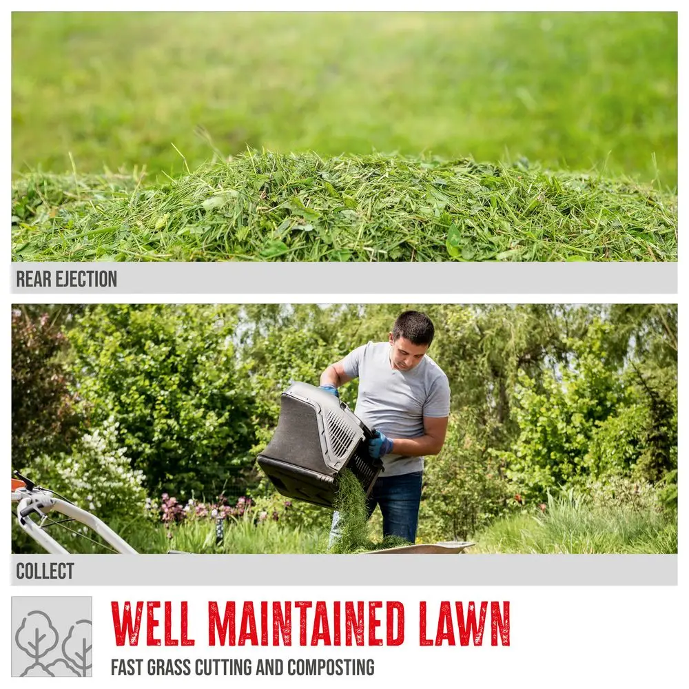 - 30-litrowy kosz na trawę wykonany z wytrzymałego tworzywa sztucznego ze wskaźnikiem poziomu napełnienia