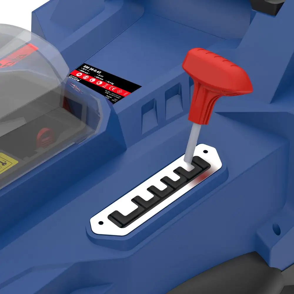 Kosiarka RM 36-0,43, 2 akumulatory 4 Ah, podwójna ładowarka 2 x 3 A