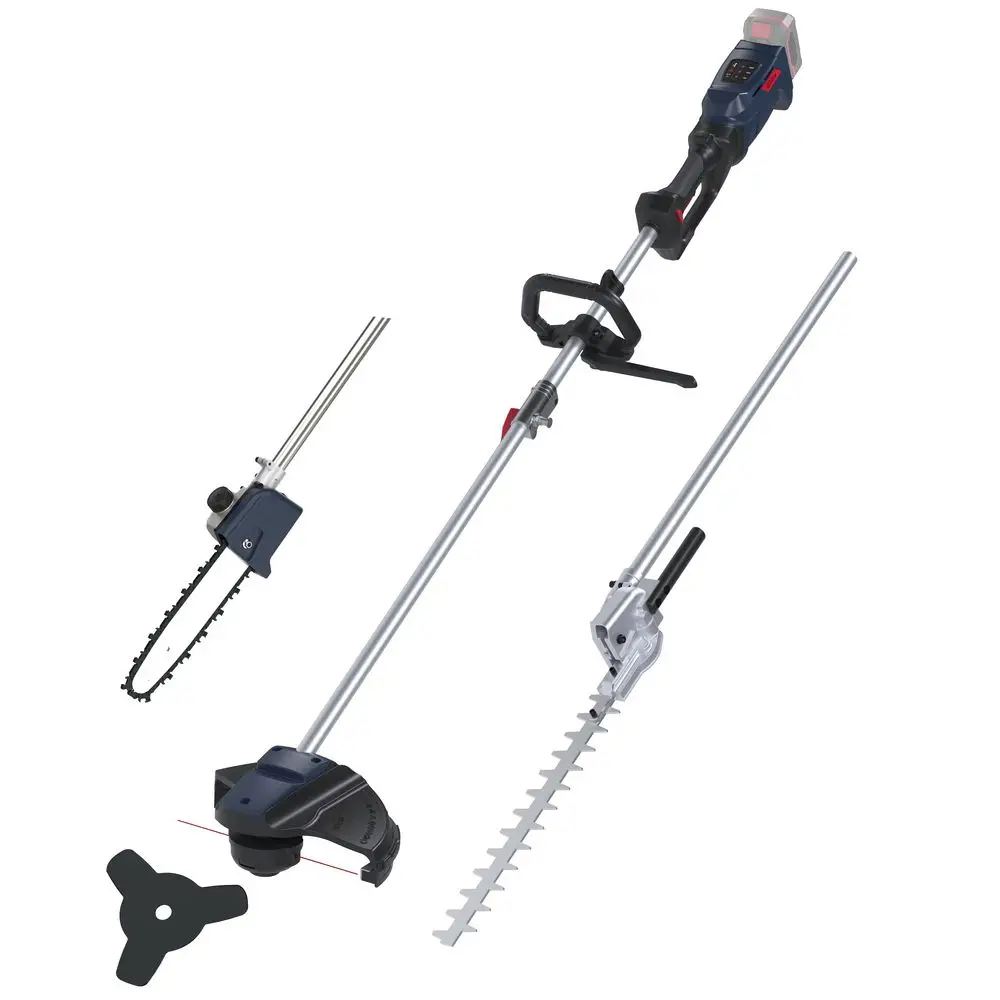 Akumulatorowy teleskopowy zestaw do pielęgnacji ogrodu Güde GPS 18-0 to idealne, wszechstronne urządzenie do wszystkich prac konserwacyjnych w ogrodzie, na podwórku i do pielęgnacji zieleni. Ten wszechstronny zestaw zawiera przystawki do wykaszarek, podkaszarek, nożyc do żywopłotu i pił łańcuchowych do gałęzi, dzięki czemu jest doskonale przygotowany do każdego zadania. Dzięki odchylanym funkcjom i wygodnym szerokościom cięcia umożliwia wydajną i precyzyjną pracę, nawet w trudno dostępnych miejscach. Idealny do kompleksowej pielęgnacji zieleni.