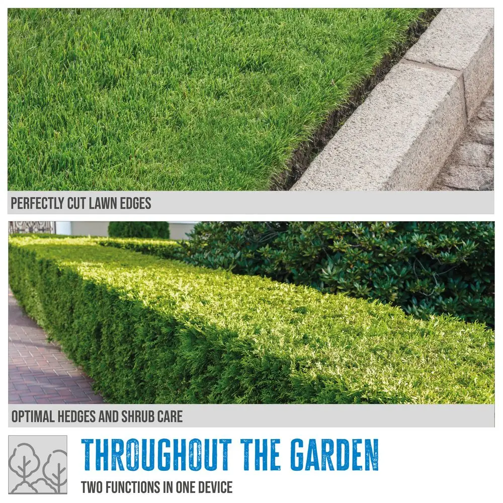 Szybka, beznarzędziowa zmiana na nożyce do trawy lub żywopłotu/krzewów.