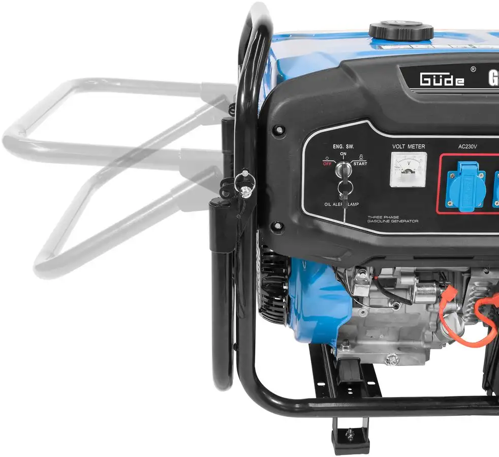 Agregat prądotwórczy Güde o mocy 6 kW z dwoma kółkami transportowymi i uchwytem do przenoszenia zapewnia użytkownikowi wysoki poziom komfortu. Dzięki temu agregat może być łatwo transportowany i używany w dowolnym miejscu, bez obciążania pleców. Wyposażony w chłodzony powietrzem 4-suwowy silnik benzynowy, elektryczny system rozruchu akumulatorów, rozrusznik rewersyjny, panel sterowania z dwoma gniazdami 230 V i przyłączem CEE 16A 5P 400 V. Wbudowany bezpiecznik niskiego poziomu oleju automatycznie wyłącza się, gdy poziom oleju jest niski, zapobiegając uszkodzeniu silnika. Nasz generator to niezawodne urządzenie wykorzystujące generator z miedzianymi uzwojeniami, który posiada również regulator AVR, który automatycznie zapewnia stabilną moc i regulację napięcia.