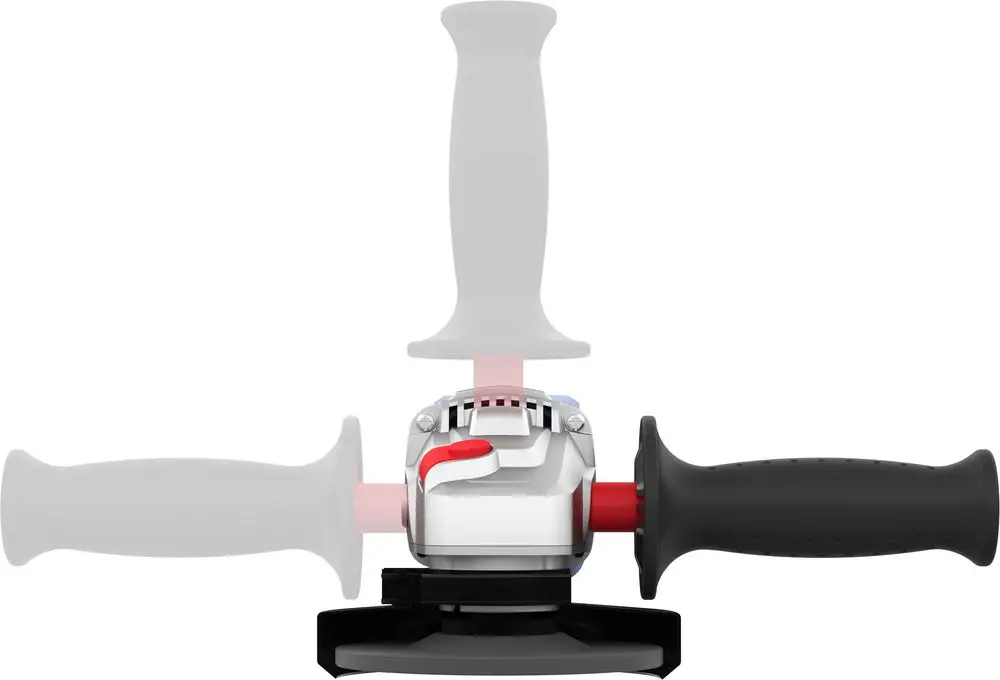 Szlifierka została zaprojektowana z myślą o wygodzie użytkownika. Smukły korpus z gumowanym uchwytem zapewnia pewny chwyt, a 3-pozycyjny uchwyt dodatkowy umożliwia dopasowanie narzędzia do rodzaju pracy.