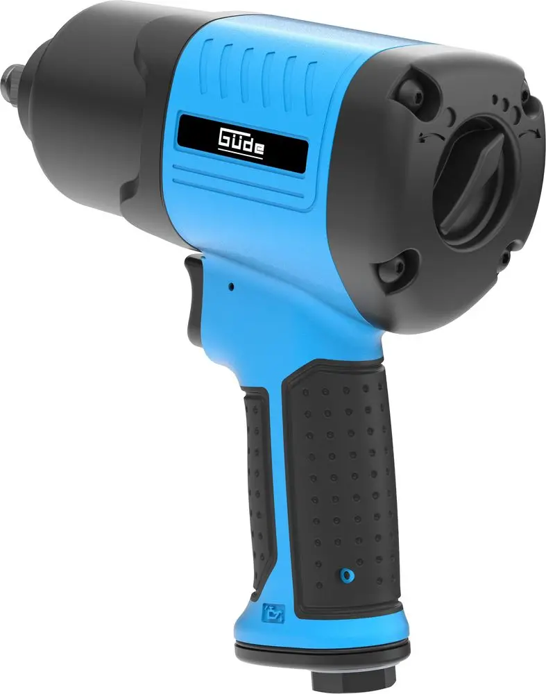 Potężny pneumatyczny klucz udarowy Twin Hammer ½ firmy Güde to profesjonalny pomocnik podczas wymiany opon lub podobnych zastosowań wymagających maksymalnej mocy. Wyposażony w solidny i wysoce wydajny mechanizm udarowy z podwójnym młotkiem, klucz udarowy osiąga maksymalny moment odkręcania 1600 Nm! Moment dokręcania można regulować w 3 stopniach (300 Nm | 800 Nm | 1000 Nm) za pomocą wygodnego pokrętła. Dzięki ergonomicznie ukształtowanej rękojeści i niewielkiej masie wynoszącej zaledwie 2,4 kg można cieszyć się maksymalnym komfortem pracy. Rękojeść jest izolowana od zimna i tłumi drgania.