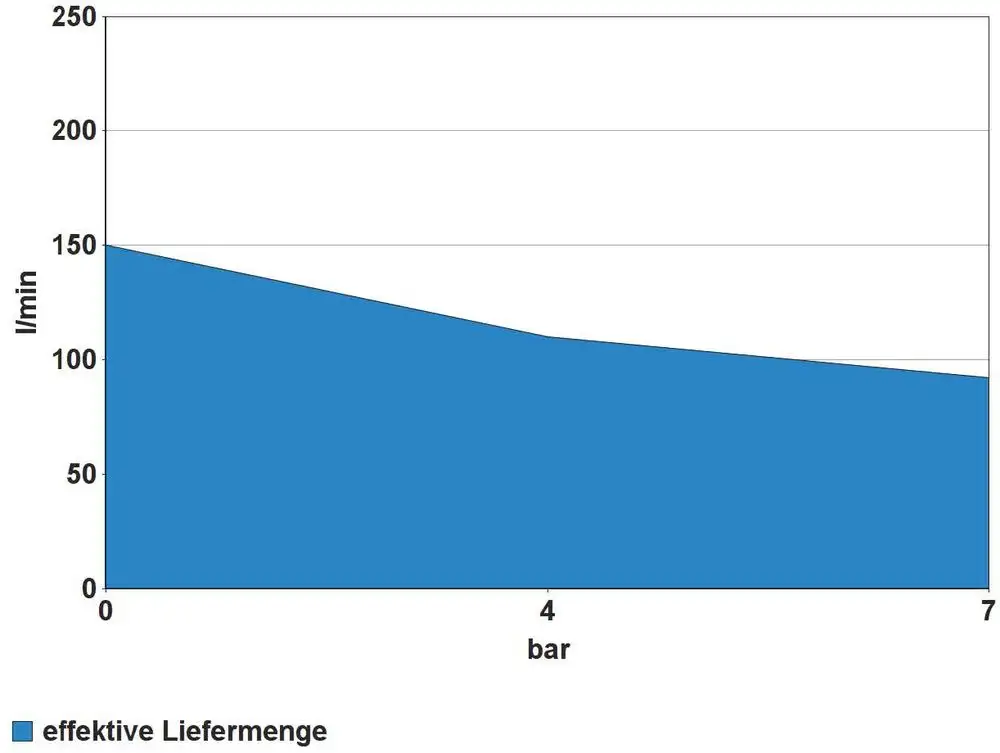 Efektywna ilość dostarczana 0 bar: 150 l/min