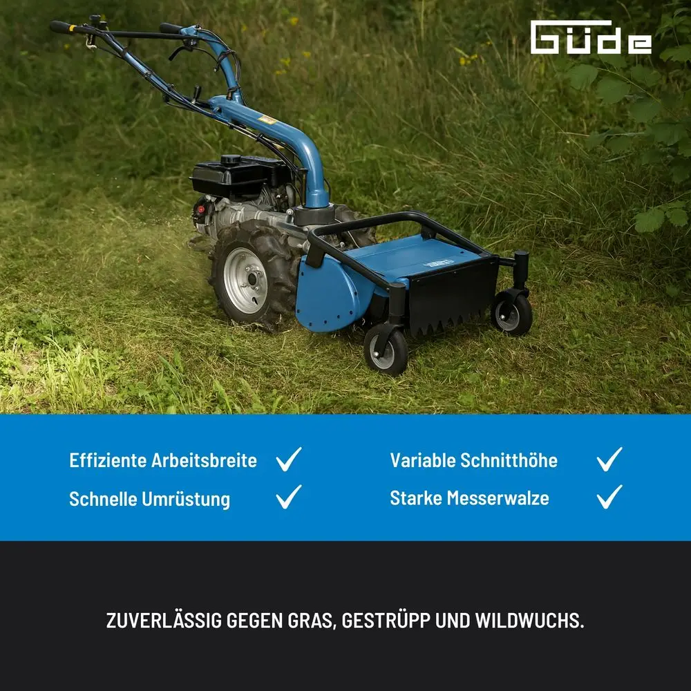 Przekształć swój ciągnik jednoosiowy w solidną kosiarkę do łąk i zarośli w mgnieniu oka: Kosiarka bijakowa Güde (odpowiednia dla modelu 95187) to idealne rozwiązanie do wymagających prac związanych z koszeniem na nierównym terenie, w zarośniętych ogrodach lub podczas pielęgnacji terenów zielonych. Kosiarka bijakowa niezawodnie rozdrabnia trawę, dzikie odrosty i lekkie zarośla, pozostawiając po sobie czysty wzór koszenia. Prosty montaż na kosiarce jednoosiowej oszczędza czas i znacznie rozszerza zakres zastosowania maszyny.