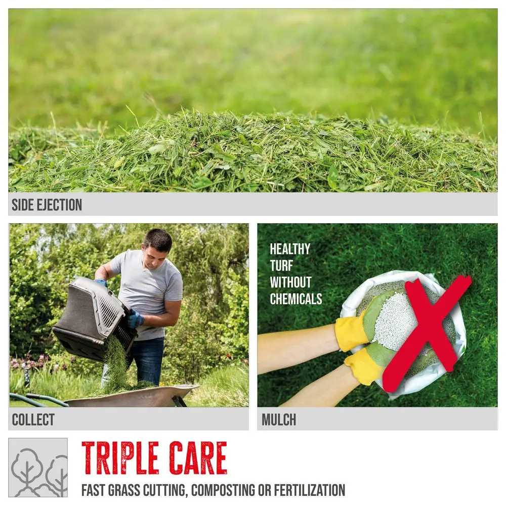 Funkcje: Koszenie, zbieranie, mulczowanie i wyrzut boczny