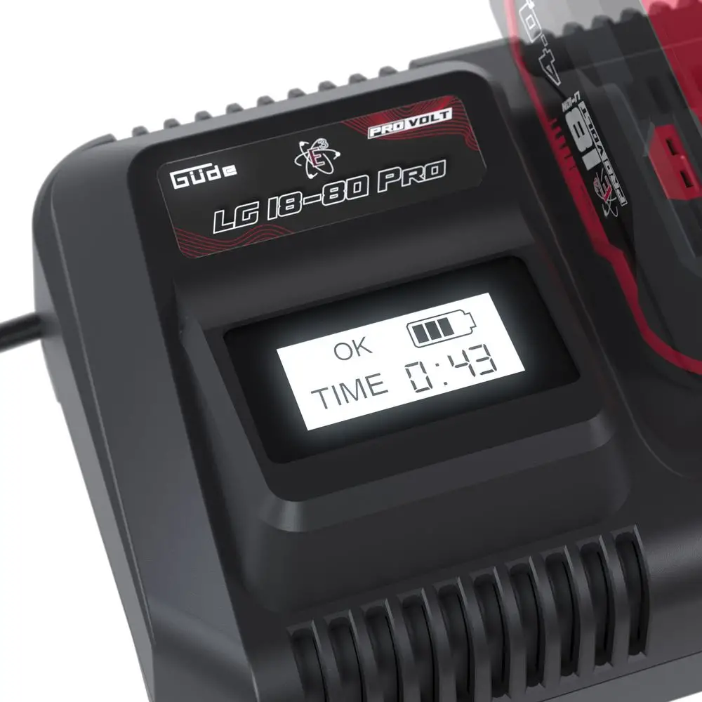 Nasza szybka ładowarka z wyświetlaczem pokazuje aktualny czas ładowania na żywo podczas procesu ładowania. Oznacza to, że w każdej chwili można sprawdzić, jak długo bateria jest ładowana i zawsze kontrolować czas ładowania. W porównaniu do innych naszych ładowarek, ta szybka ładowarka ładuje akumulatory znacznie szybciej i zapewnia jeszcze szybszy powrót do pracy z pełną mocą.