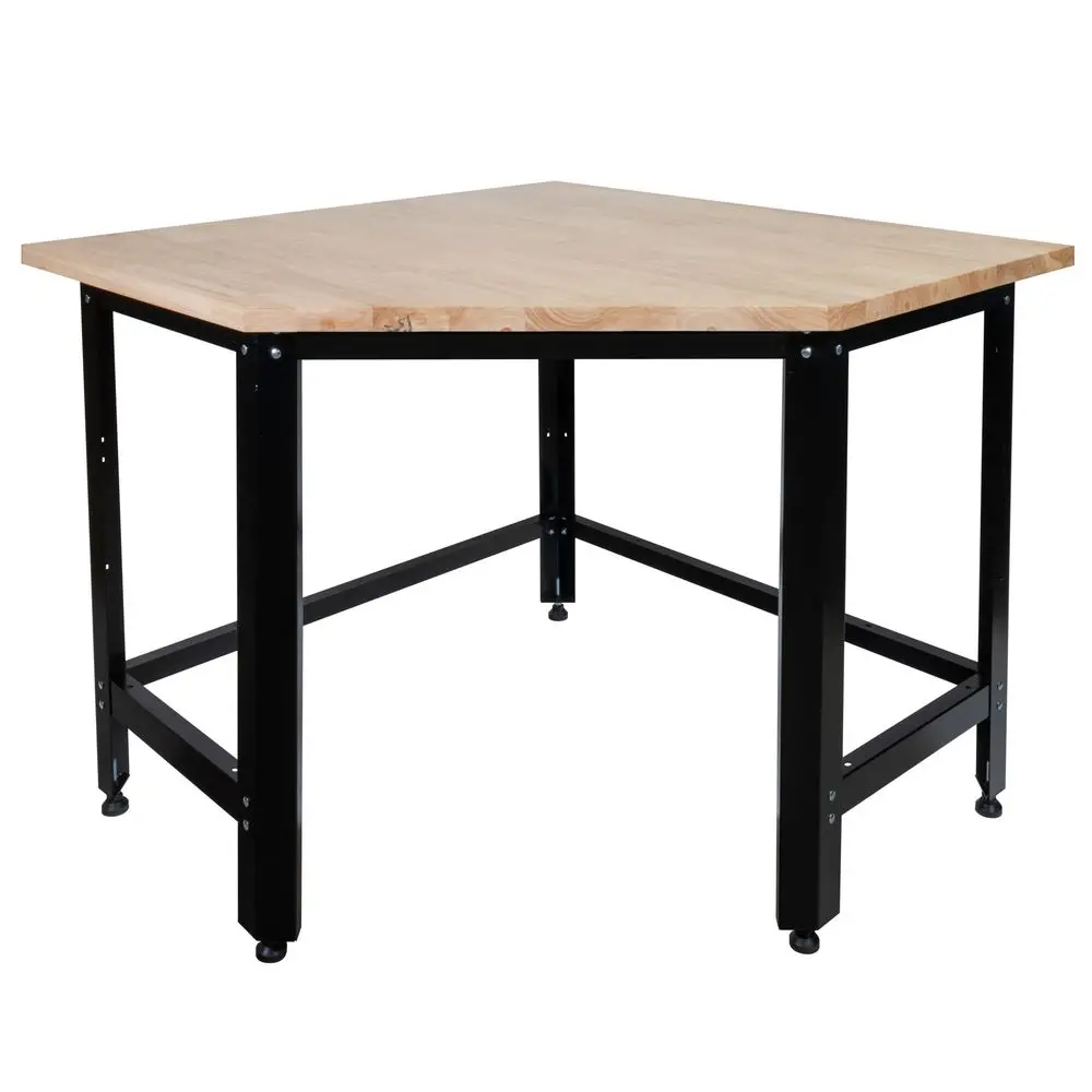 To pięciokątne połączenie pozwala optymalnie wykorzystać narożnik pomieszczenia, przekształcając często marnowaną przestrzeń w dodatkową stabilną powierzchnię roboczą. W połączeniu z innymi stołami warsztatowymi z tej linii, staje się idealnym rozwiązaniem do wyposażenia garażu lub warsztatu.