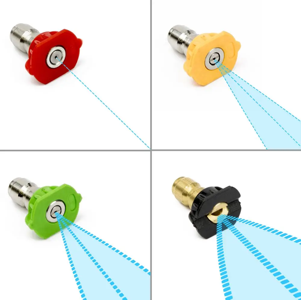 Myjka wysokociśnieniowa, 6 m wąż wysokociśnieniowy na praktycznym bębnie, pistolet wysokociśnieniowy z 4 dyszami (0° / 15° / 25° i szeroka), zmywacz brudu, szczotka trójkątna, obrotowa szczotka okrągła i środek do czyszczenia powierzchni