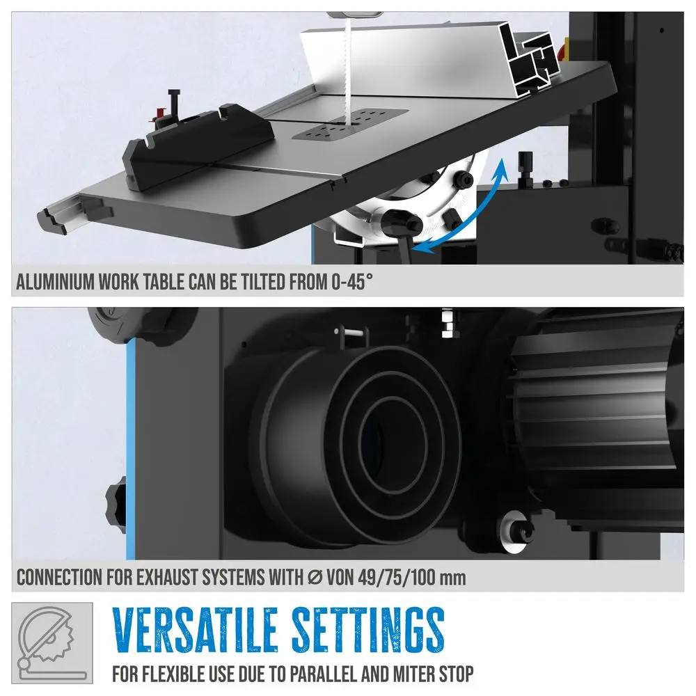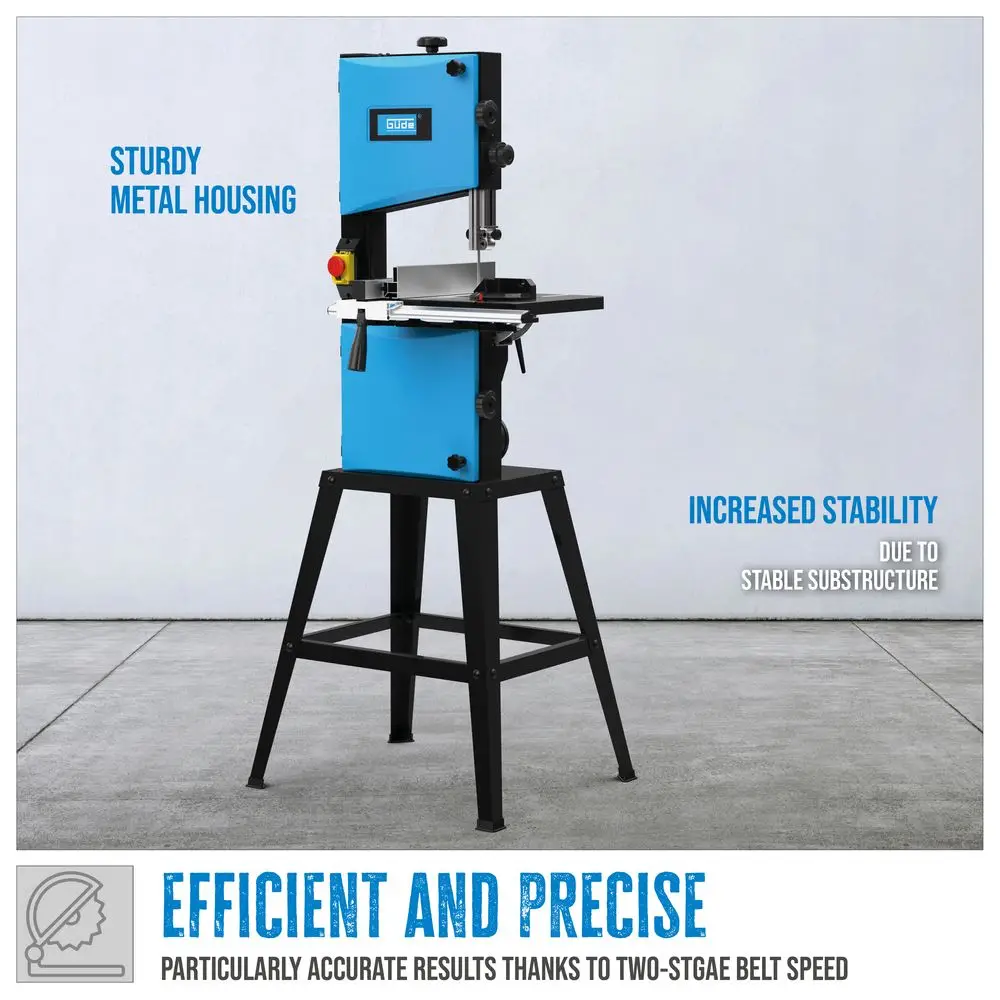 Piły taśmowe Güde GBS 200, GBS 250 i GBS 300 imponują solidną metalową obudową i aluminiowymi rolkami, niektóre ze specjalną gumową powłoką. Gwarantuje to długą żywotność brzeszczotu. Stół roboczy każdej piły taśmowej jest wykonany z aluminium i może być pochylany w zakresie od 0 do 45°. Model GBS 200 jest przystosowany do montażu na stole, natomiast GBS 250 i GBS 300 są wyposażone w stabilną stalową konstrukcję nośną. Zwiększa to stabilność i minimalizuje ewentualne wibracje. Wszystkie piły taśmowe są również wyposażone w przyłącze do systemów odciągowych o średnicy 49|75|100 mm. Aby zapewnić dodatkowe bezpieczeństwo, cała gama pił taśmowych jest testowana przez TÜV GS.
