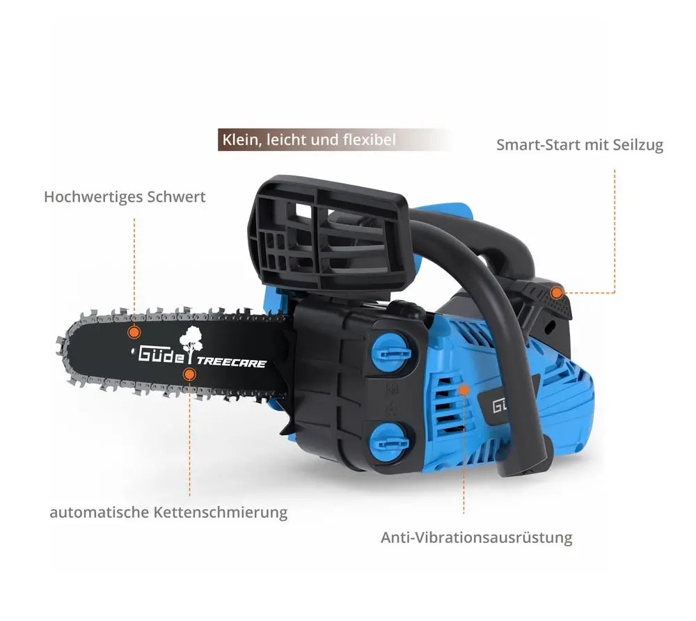 Pilarka spalinowa Güde BBS 300-25 to idealny wybór do profesjonalnych i wymagających prac w lasach, ogrodach i parkach. Wyposażona w mocny 2-suwowy silnik benzynowy, ta poręczna pilarka łańcuchowa oferuje imponującą wydajność cięcia i maksymalną efektywność. System Smart Start ze starterem i ssaniem umożliwia szybki i łatwy rozruch, a automatyczne smarowanie i mechaniczny układ hamulcowy zapewniają dodatkowe bezpieczeństwo i płynną pracę. Dzięki niewielkiej wadze pilarka doskonale nadaje się do długich sesji roboczych bez utraty komfortu i wydajności. Idealna dla tych, którzy cenią sobie wydajność i łatwość obsługi.