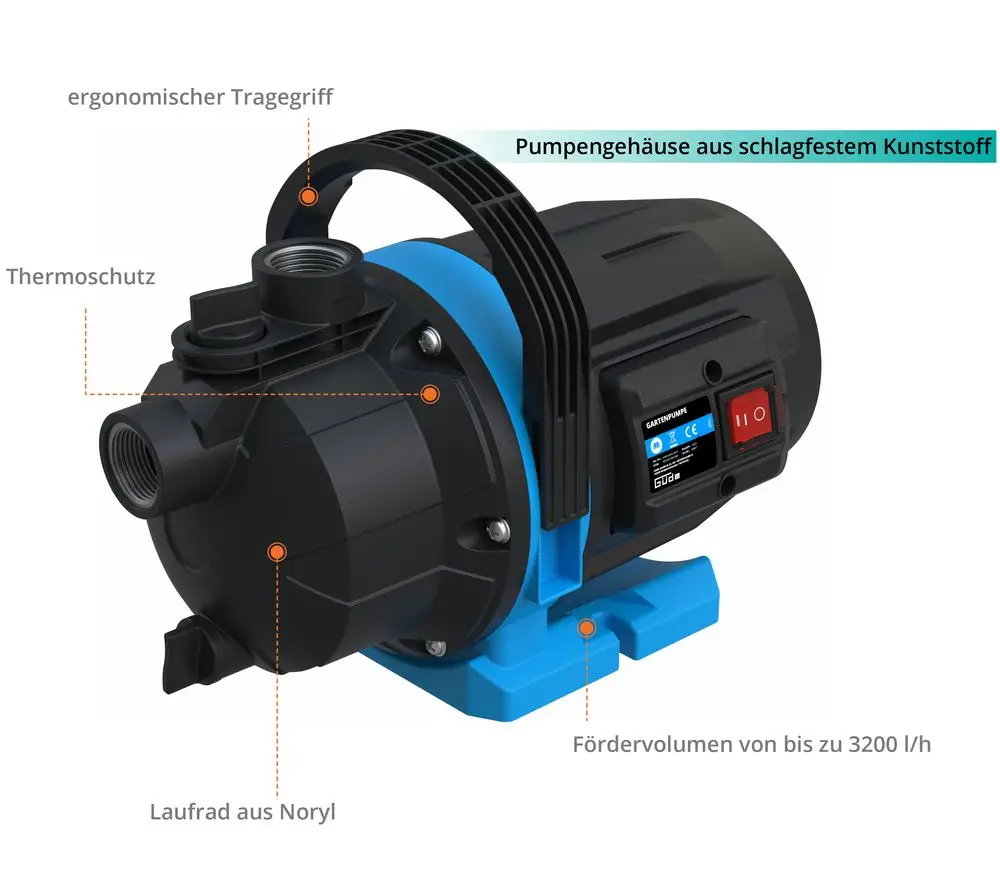 Pompa ogrodowa Güde GP 6035 wyznacza nowe standardy w dziedzinie nawadniania ogrodów i zaopatrzenia w wodę. Wyposażona w solidną obudowę wykonaną z odpornego na uderzenia tworzywa sztucznego, sprosta wyzwaniom codziennego życia i gwarantuje długą żywotność. Wbudowany w pompę wirnik Noryl zapewnia optymalne natężenie przepływu wody i maksymalną wydajność. Dzięki uszczelnieniu mechanicznemu woda zawsze pozostaje na swoim miejscu, a niepożądane wycieki należą już do przeszłości. W razie potrzeby pompę można łatwo odpowietrzyć lub opróżnić za pomocą zintegrowanego korka odpowietrzającego i spustowego. Ergonomiczny uchwyt do przenoszenia ułatwia transport i przenoszenie, a praktyczny włącznik/wyłącznik zapewnia prostą obsługę. Model GP 6035 imponuje jednak nie tylko pod względem funkcjonalności, ale także pod względem bezpieczeństwa: wbudowane zabezpieczenie termiczne chroni pompę przed przegrzaniem, a tym samym zapewnia bezpieczną pracę. Ponadto metalowe gwintowane wkładki zapewniają solidne połączenie i zwiększają stabilność i trwałość urządzenia. Pompa ogrodowa Güde GP 6035 to wysokiej jakości i niezawodne narzędzie, które zawsze będzie wiernie służyć do pielęgnacji ogrodu i dostarczania wody.