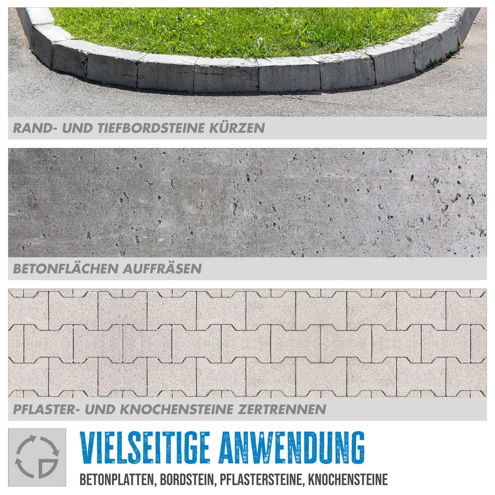 System ten umożliwia proste cięcie powierzchni betonowych i innych nawierzchni. Oznacza to, że zawsze można produktywnie zakończyć różne prace drogowe i inne. Piła do betonu jest również łatwa w obsłudze i przenoszeniu przez jedną osobę. Dzięki mocnemu, chłodzonemu powietrzem 2-suwowemu silnikowi o mocy 3,9 KM / 65 ccm maszyna może przecinać również grubsze materiały. Tarcza tnąca, wykonana z wytrzymałego, mocnego diamentu, umożliwia szybkie cięcie dużych powierzchni materiału. Ponadto urządzenie umożliwia cięcie na głębokość do 115 mm. Co więcej, dzięki procesowi cięcia na mokro i sucho, z maszyny można korzystać także w warunkach wilgotnych i suchych. Maszyna posiada złącze węża i regulację ciśnienia wody za pomocą zaworów. Jest to zatem idealna maszyna do ciężkich prac związanych z cięciem w każdych warunkach pogodowych.