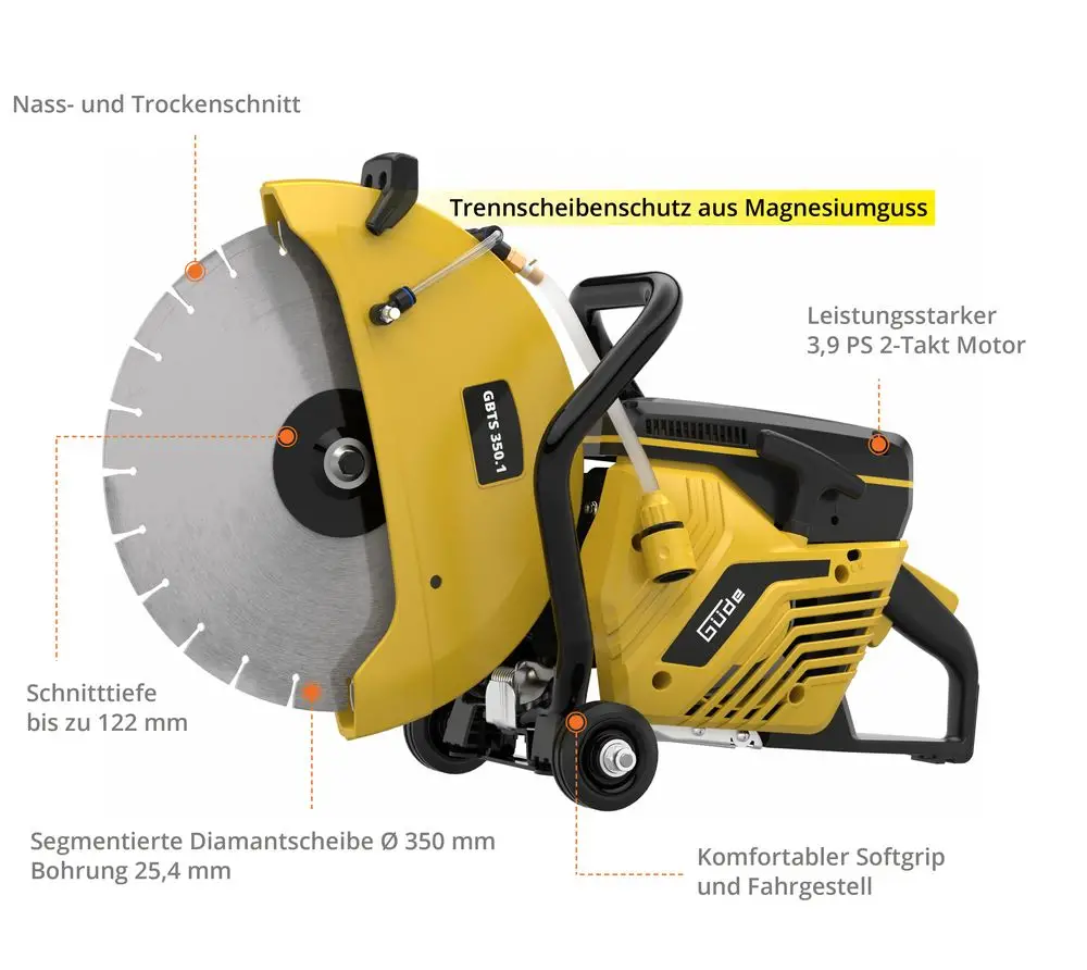 Przecinarka do betonu Güde GBTS 350.1 to niezbędny sprzęt na każdym placu budowy.