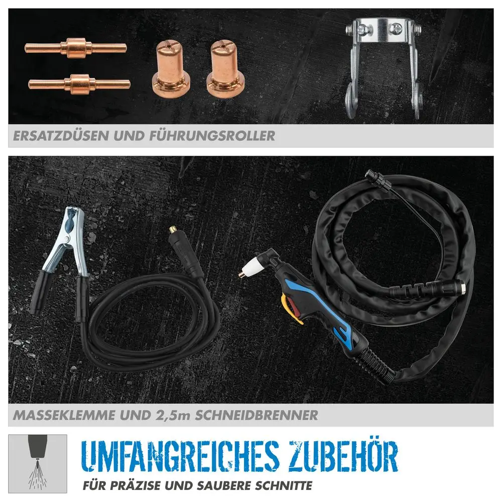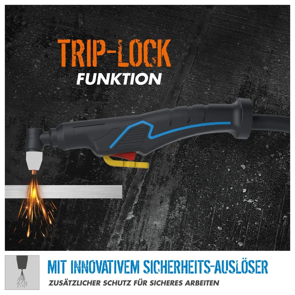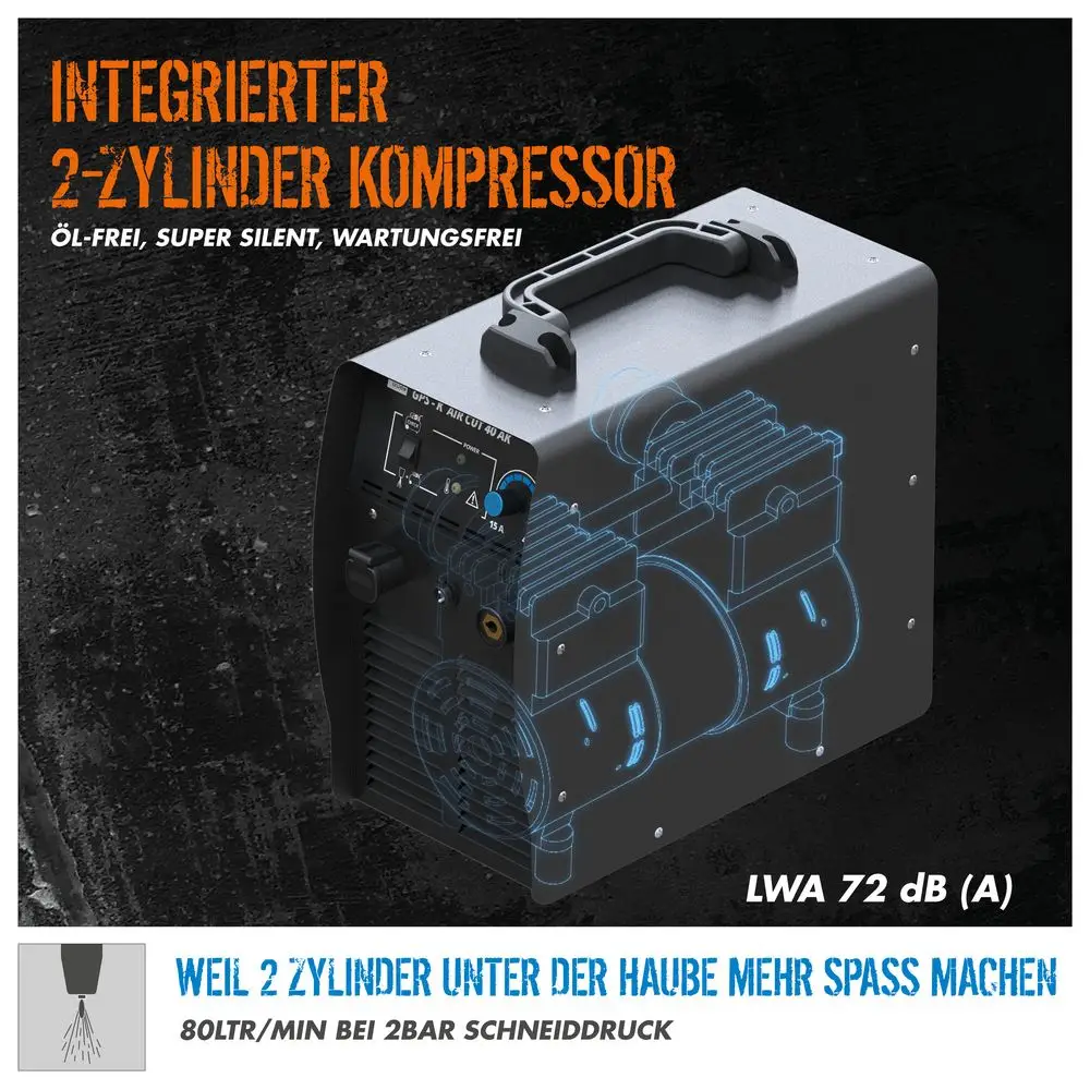 Przecinarka plazmowa Güde GPS-K AirCut 40 AK łączy w sobie przecinarkę plazmową i kompresor, dzięki czemu może być używana zarówno stacjonarnie w warsztacie, jak i mobilnie na miejscu. Dzięki maksymalnemu prądowi cięcia do 40 A, GPS-K AirCut 40Ak jest w stanie ciąć wszystkie materiały metalowe o grubości do 12 mm w cięciu separacyjnym i do 6 mm w cięciu precyzyjnym. Najnowocześniejsza technologia inwerterowa i komponenty, takie jak tranzystory IGBT, umożliwiają kompaktową konstrukcję, a także częstotliwość roboczą do 40 000 Hz i znacznie wyższy cykl pracy niż w przypadku konwencjonalnych urządzeń transformatorowych. Wchodząca w zakres dostawy prowadnica rolkowa palnika oraz kabel palnika o długości 2,5 m zapewniają największą możliwą elastyczność oraz precyzyjne i czyste cięcie. Dzięki wbudowanemu bezpiecznikowi zapłonu; HRD (Hazard Reduction Device) i innowacyjnemu bezpiecznikowi spustowemu na palniku, użytkownik jest optymalnie chroniony.