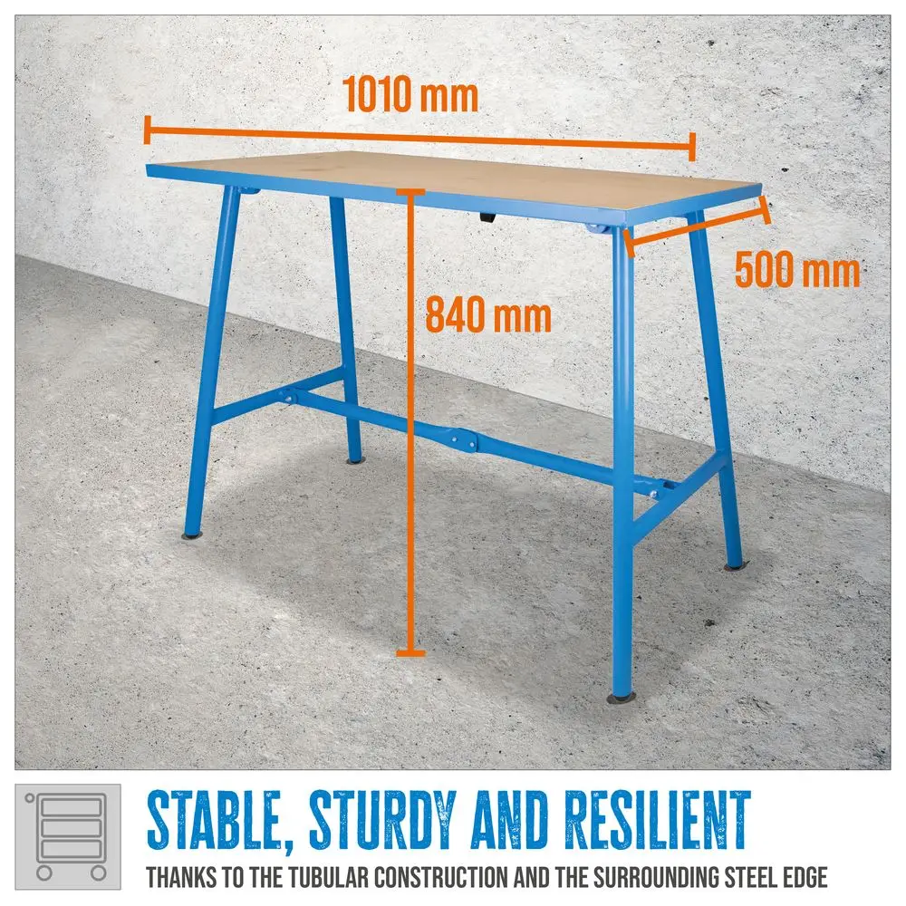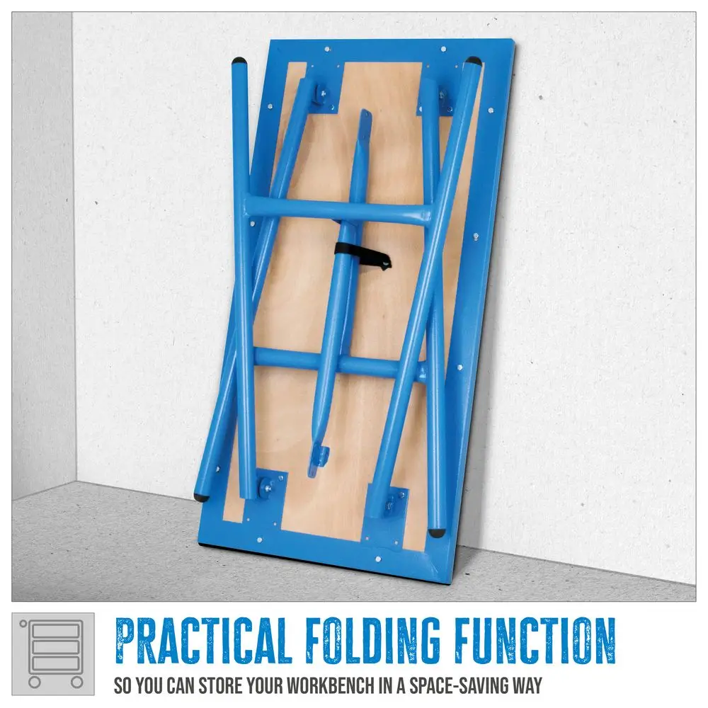 Składany stół warsztatowy GWB 100/50F to praktyczny i oszczędzający miejsce stół warsztatowy, zarówno w domu, warsztacie, garażu, jak i na placu budowy.