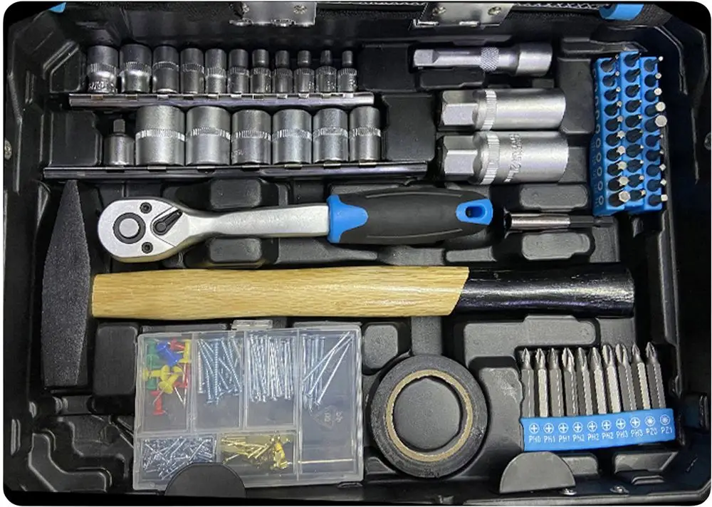 - 4 wkrętaki: PH1*75, PH2*100, SL5*75, SL6*100
