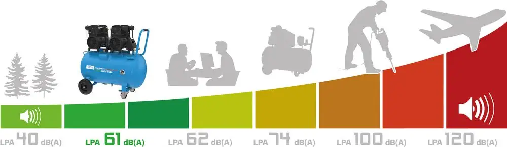 - Bezolejowa i bezobsługowa cicha sprężarka z serii Air Power