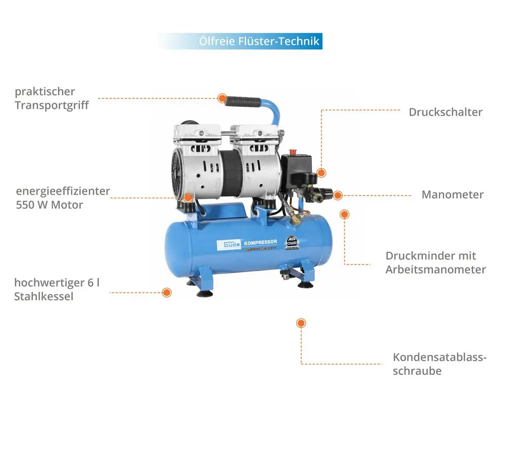 Sprężarka kompresor bezolejowy Gude Airpower 105/8/6 SILENT