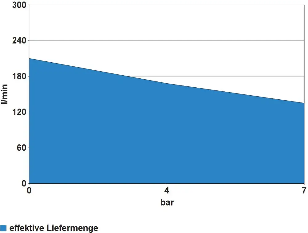 eff. Ilość dostarczana 0 bar: 210 l/min