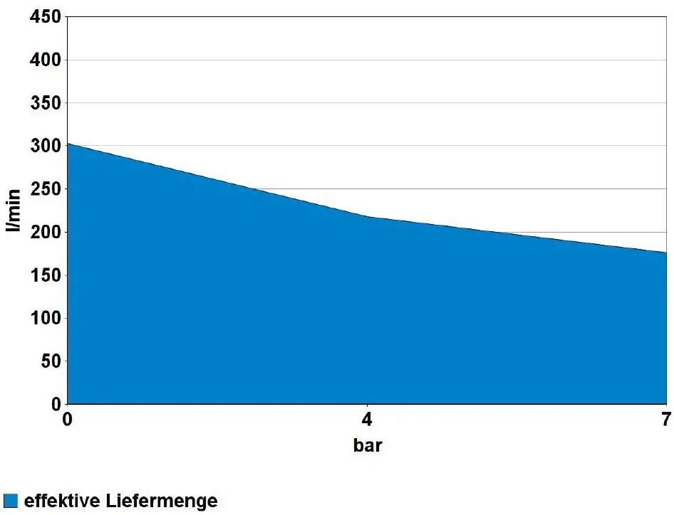 eff. Ilość dostarczana 0 bar: 303 l/min