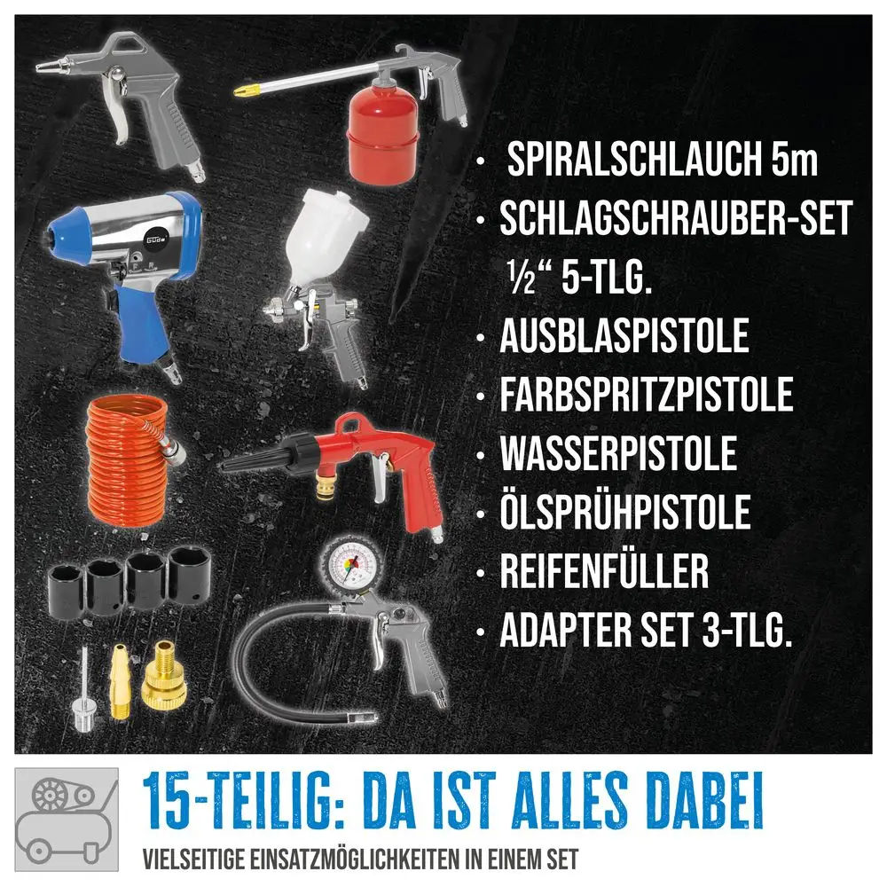 Sprężarka kompresor olejowy Gude 405/10/50 Zestaw 15 elementów