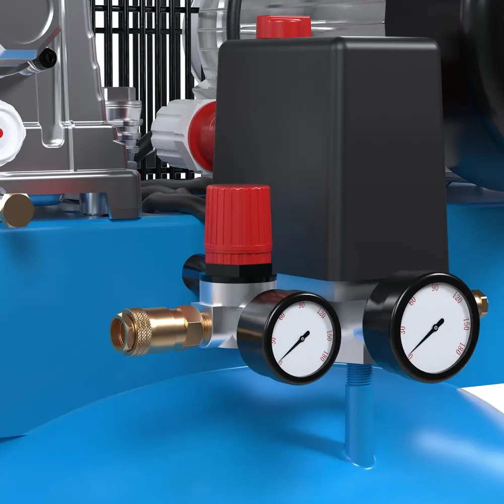 Sprężarka Güde 485/10/200 ST charakteryzuje się mocną 2-cylindrową jednostką z napędem pasowym, która zapewnia wysoką wydajność powietrza i długą żywotność. Dzięki wyłącznikowi ciśnieniowemu z zabezpieczeniem silnika, reduktorowi ciśnienia do precyzyjnego ustawiania ciśnienia, a także manometrom ciśnienia w zbiorniku i ciśnienia roboczego do precyzyjnego monitorowania ciśnienia, sprężarka ta zapewnia optymalne warunki do szerokiego zakresu zastosowań. Dwa złącza sprężonego powietrza umożliwiają jednoczesne podłączenie kilku narzędzi, a zawór bezpieczeństwa, korek spustowy kondensatu i zawór nadmiarowy zapewniają bezpieczeństwo i łatwą konserwację. Zintegrowany filtr powietrza i chłodnica końcowa poprawiają jakość powietrza i wydajność sprężarki, czyniąc z niej niezawodnego partnera do wymagających prac związanych ze sprężonym powietrzem.