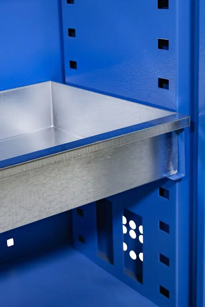 Wytrzymała, malowana proszkowo szafka wykonana w całości ze stali zapewnia profesjonalne i bezpieczne przechowywanie