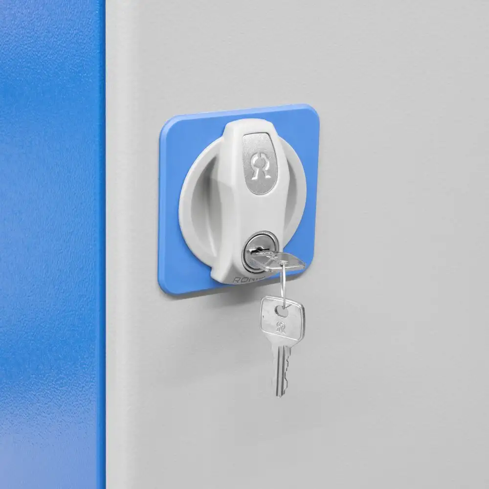 - malowana proszkowo: RAL 5015 (korpus) i RAL 7001 (drzwi)