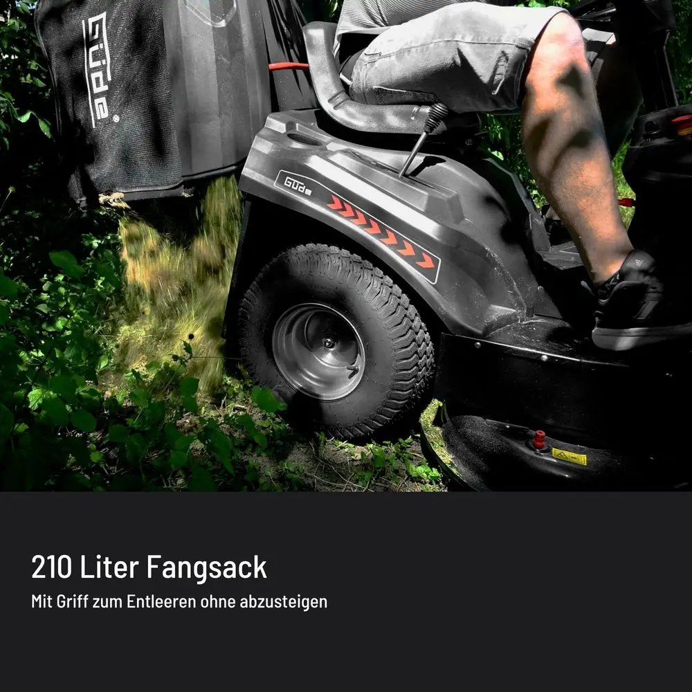 - 210-litrowy worek zbierający zapewnia wystarczający czas koszenia