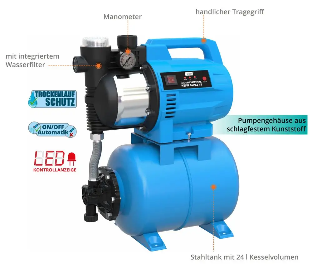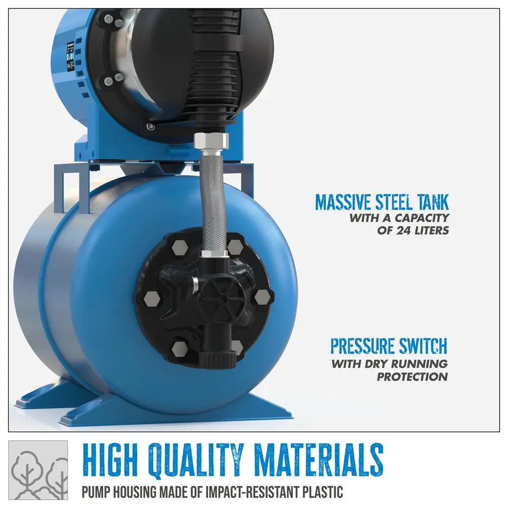 - Automatyczny wyłącznik ciśnieniowy z zabezpieczeniem przed suchobiegiem