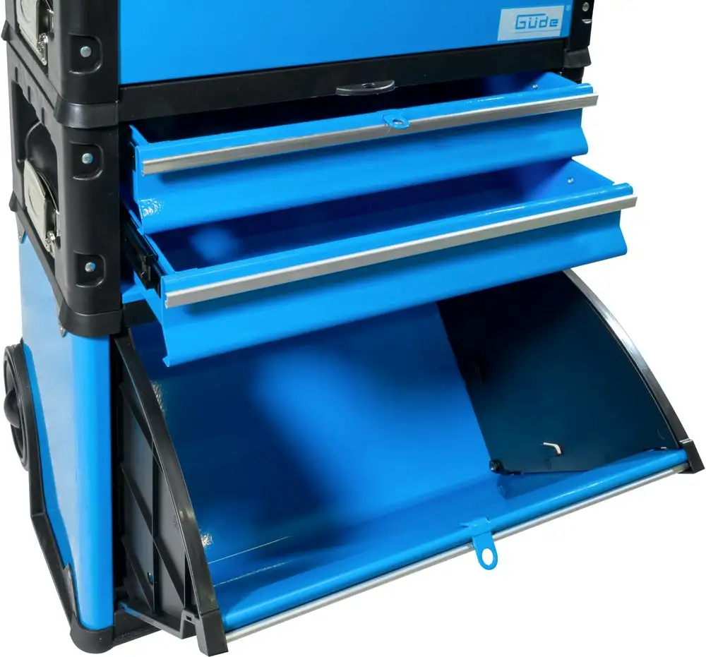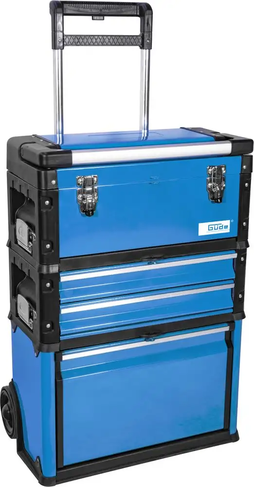 Wózek narzędziowy GWZT 2/1 składa się z trzech głównych modułów. Na górze znajduje się wyjmowana walizka narzędziowa z wyjmowaną wkładką na drobne części. Poniżej znajduje się kolejny wyjmowany moduł z dwiema szufladami na łożyskach kulkowych, który, podobnie jak walizka, ma również boczne wgłębienia do przenoszenia. Wszystkie trzy moduły są również wyposażone w uchwyty do przenoszenia i urządzenia do zakładania kłódek. Na ramie na kółkach znajduje się duża skrzynka z szeroką uchylną przegrodą, która idealnie nadaje się do przechowywania większych narzędzi. Dzięki teleskopowej rączce i dwóm dużym kółkom z twardej gumy, wózek jest łatwy do przemieszczania, nawet gdy jest w pełni zapakowany, co czyni go idealnym towarzyszem dla entuzjastów majsterkowania, rzemieślników, wędkarzy lub artystów rękodzieła.