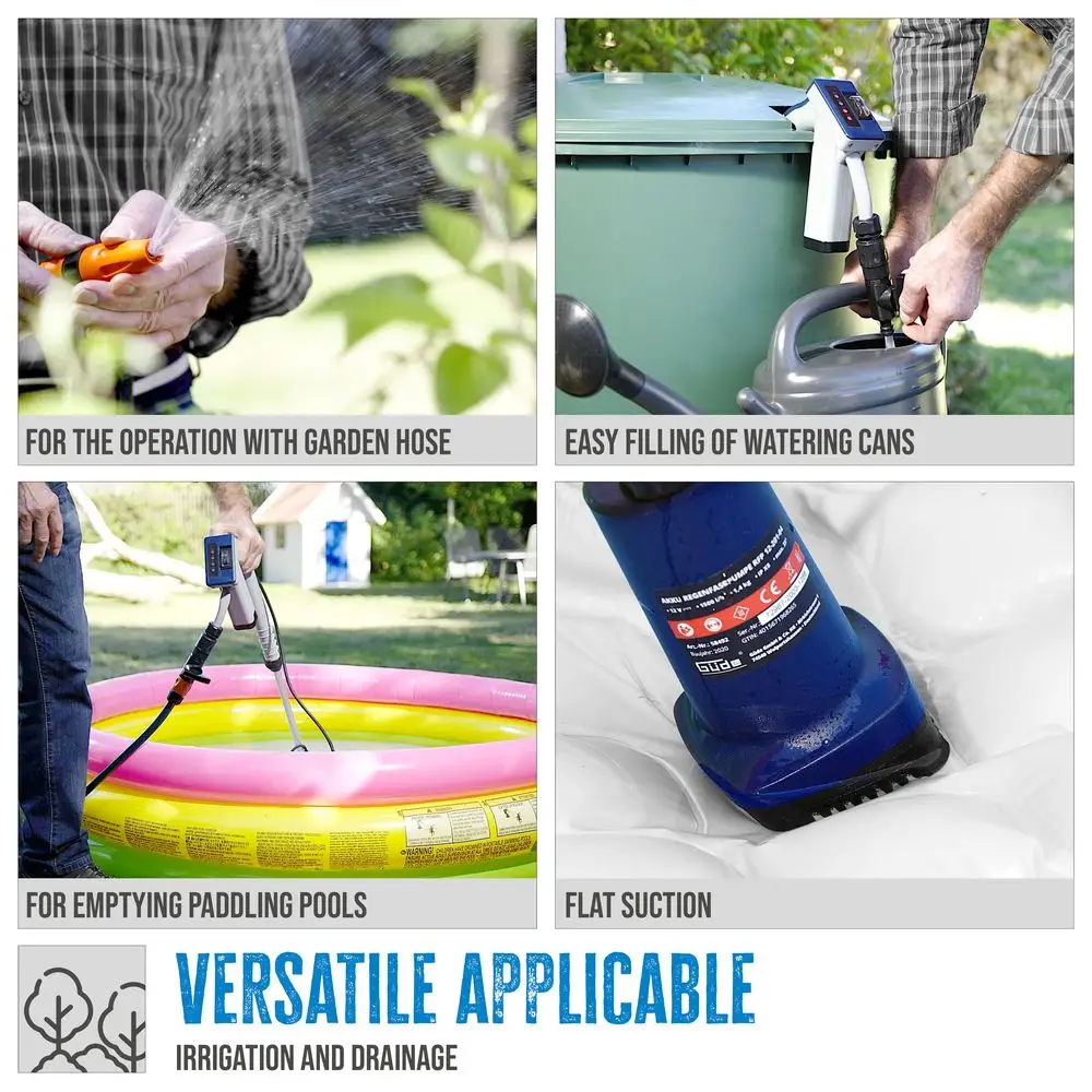Obszary zastosowań: Idealny do podlewania ogrodów z beczek na deszczówkę i szybkiego opróżniania basenów lub oczek wodnych.