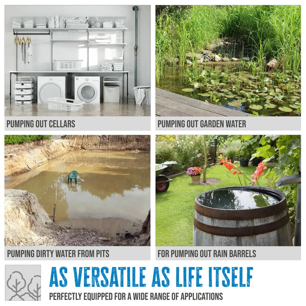 Do pompowania silnie zanieczyszczonej wody z pomieszczeń, dołów, wody ogrodowej, stawów itp.