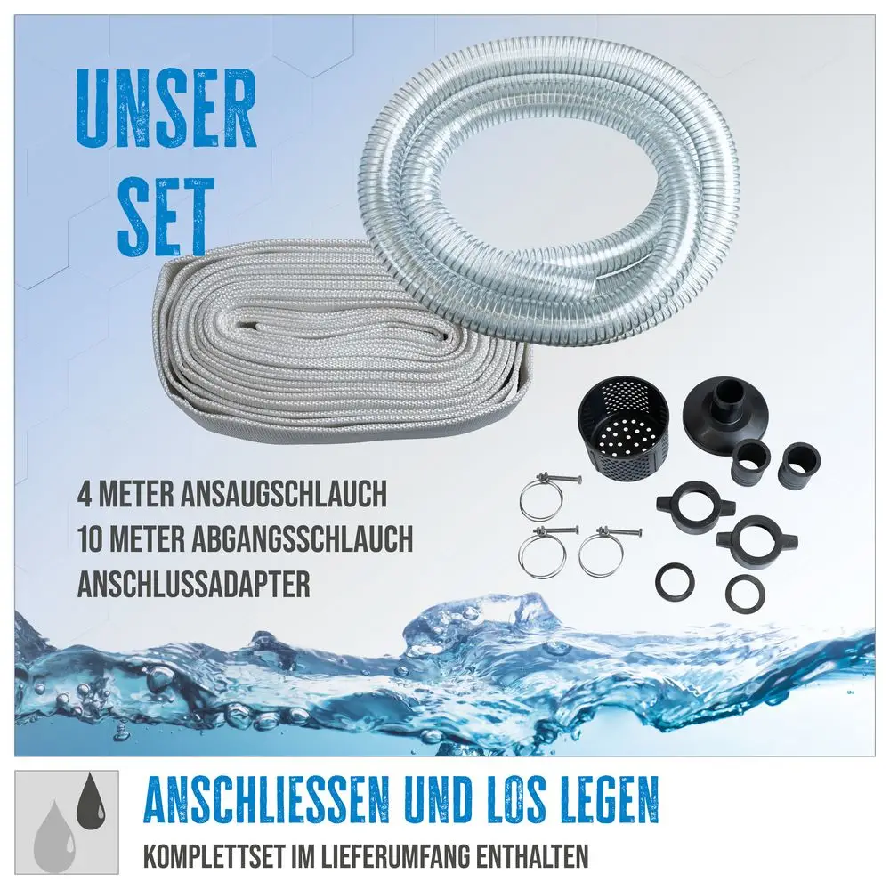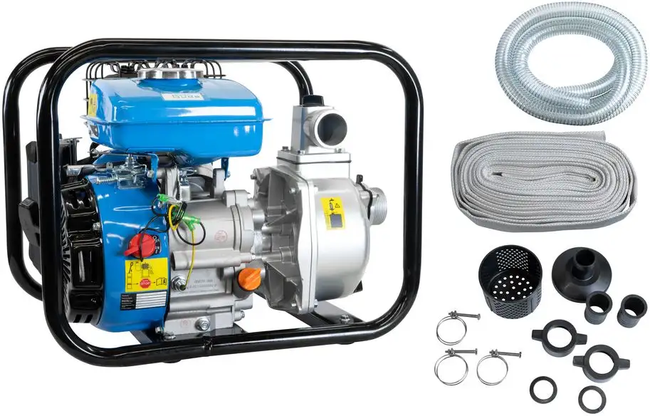 Motopompa, zestaw adapterów przyłączeniowych, 4-metrowy wąż ssący, 10-metrowy wąż wylotowy