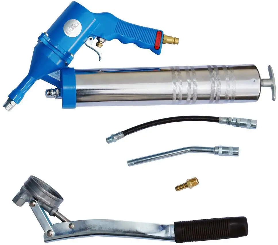 Zestaw smarownic pneumatycznych Güde to wszechstronne i przyjazne dla użytkownika narzędzie, idealne do smarowania maszyn i pojazdów. Jest kompatybilny z kartridżami ze smarem DIN lub może być napełniany bezpośrednio dla większej elastyczności. Wyposażony w kątową rurkę dyszy i ustnik, umożliwia precyzyjne i czyste nakładanie smarów nawet w trudno dostępnych miejscach. Obsługa jest prosta i wydajna dzięki dźwigni do obsługi ręcznej, która zapewnia dobrą kontrolę nad ilością smaru. Elastyczny wąż dyszy zapewnia dodatkową swobodę ruchu i ułatwia pracę w różnych pozycjach. Ogólnie rzecz biorąc, zestaw smarownic pneumatycznych Güde jest praktycznym i niezawodnym narzędziem do prac konserwacyjnych i serwisowych.