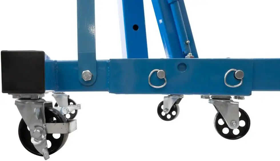 - Wyposażony w dwa kółka z hamulcem, zwiększające bezpieczeństwo i stabilność podczas podnoszenia.