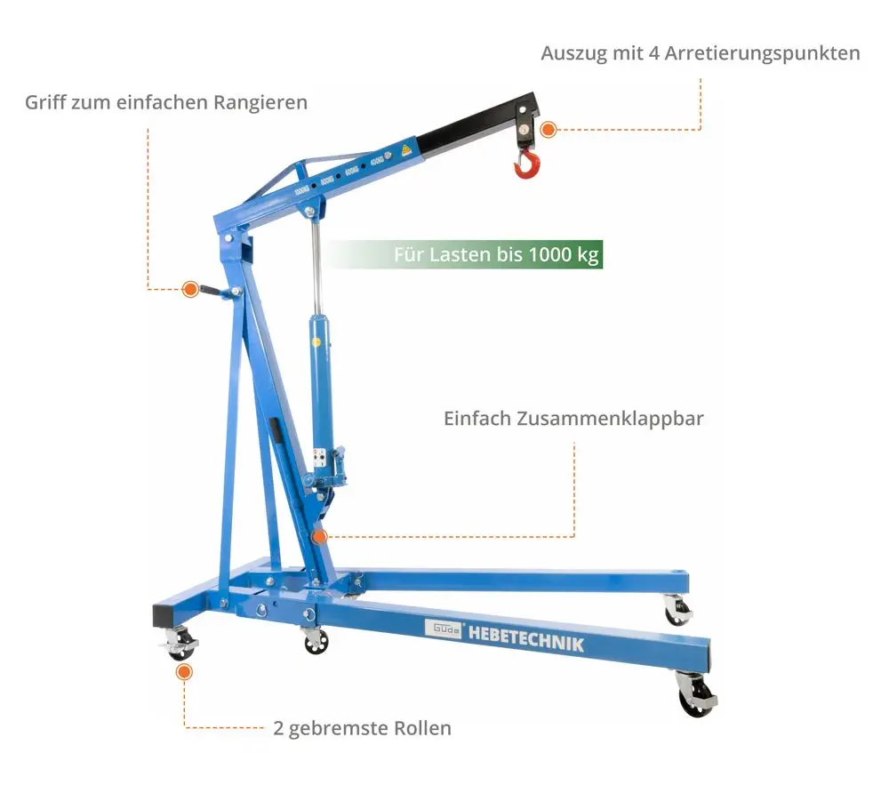 Żuraw warsztatowy Güde 1000.1 kg okazuje się niezastąpionym pomocnikiem przy wymagających pracach związanych z podnoszeniem w warsztacie, zwłaszcza przy podnoszeniu silników i innych ciężkich elementów. Ten ręczny żuraw został specjalnie opracowany do bezpiecznego i wydajnego przenoszenia ładunków o masie do 1000 kg. Jego siła tkwi w połączeniu wydajności i zdolności adaptacyjnych: dzięki regulowanym przedłużeniom łatwo dostosowuje się do rozmiaru i kształtu szerokiej gamy ładunków. Maksymalna wysokość podnoszenia 216 cm umożliwia również podnoszenie na wyższe obszary. Pomimo solidnej konstrukcji i dużego udźwigu, żuraw jest zaskakująco kompaktowy po złożeniu, co ułatwia jego przechowywanie i transport. Do codziennego użytku w warsztacie lub do specjalnych projektów, żuraw warsztatowy Güde 1000.1 kg oferuje niezawodne wsparcie, które sprawia, że procesy pracy są bezpieczniejsze i bardziej wydajne.